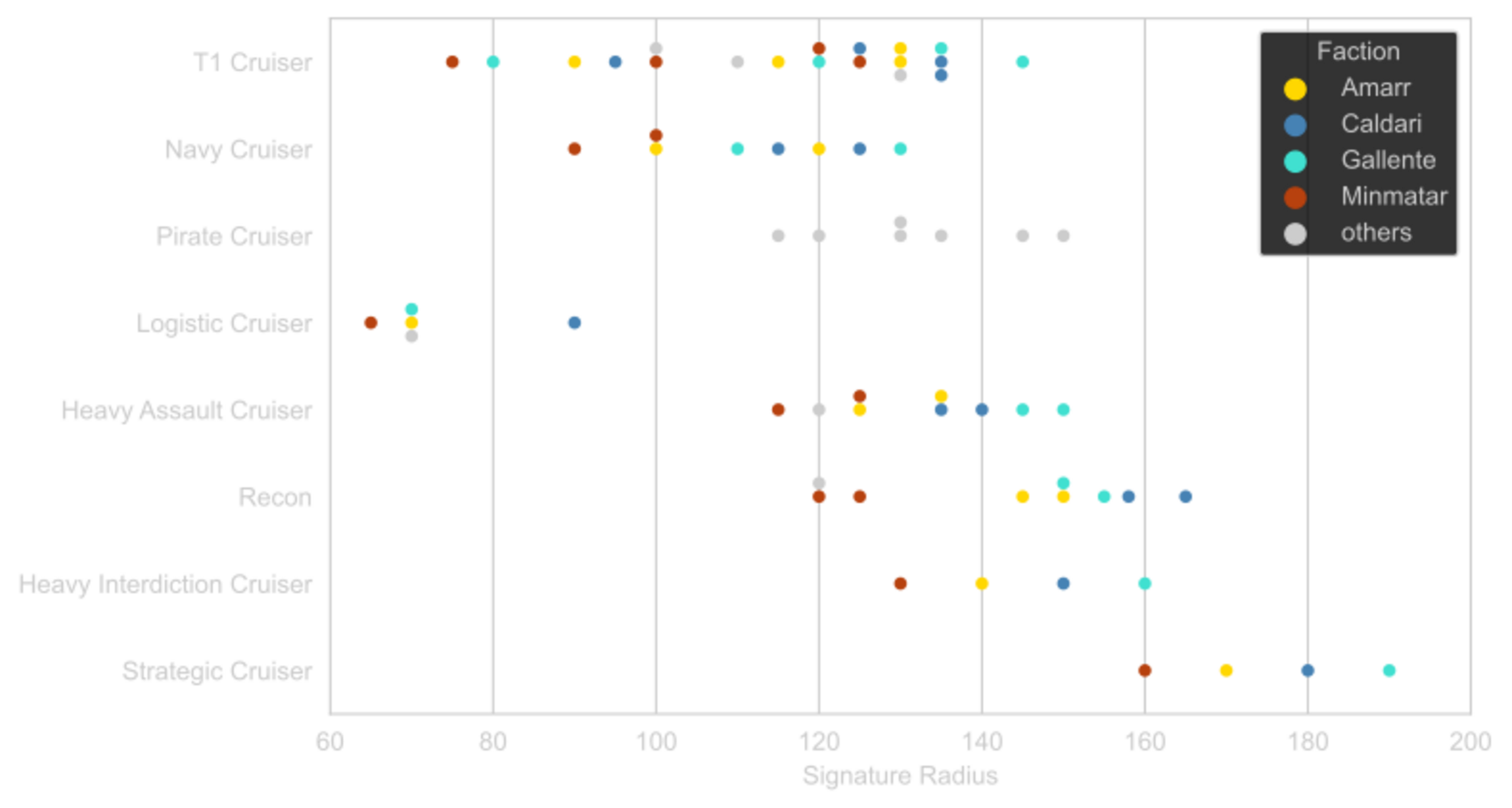 Comparison of the signatures radius of cruisers