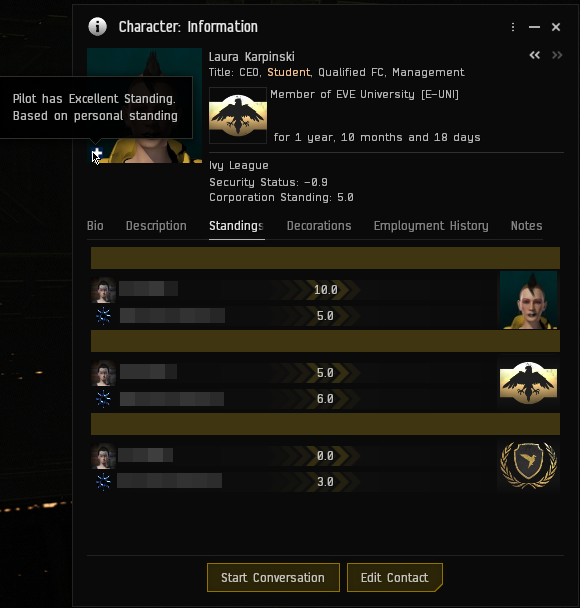 | 11:01, 22 January 2026 | 580 × 608 (160 KB) | Boniface Vachon (talk | contribs) | Recreated to match the current UI which has a standing overview but no derived standing capsuleer contacts, also figured it might be good to just use our current CEO as an example instead of someone unaffiliated | ||
